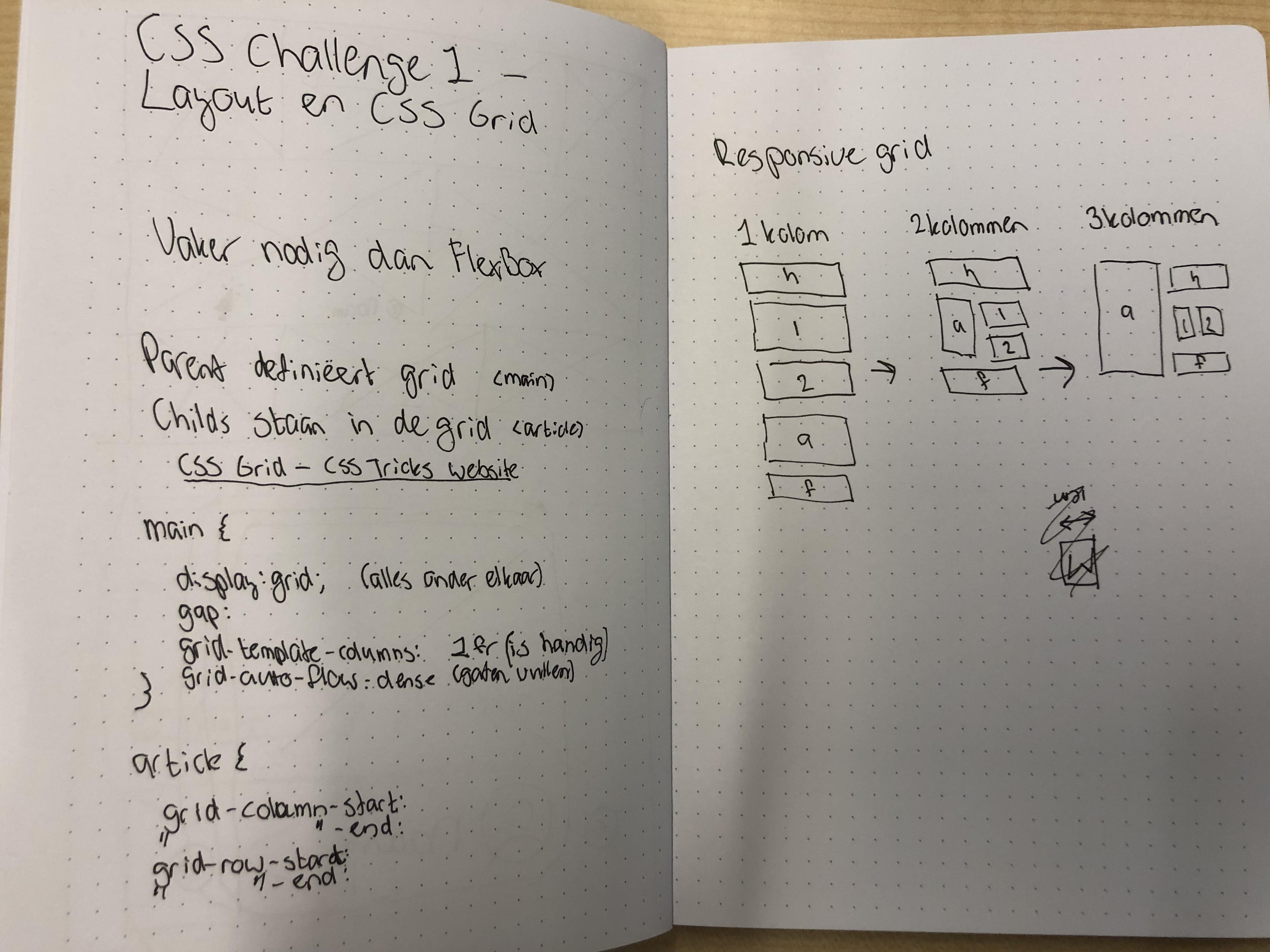 CSS Challenge 1 - Grid layout: Geleerd over en geoefend met CSS Grid. (Aantekeningen)