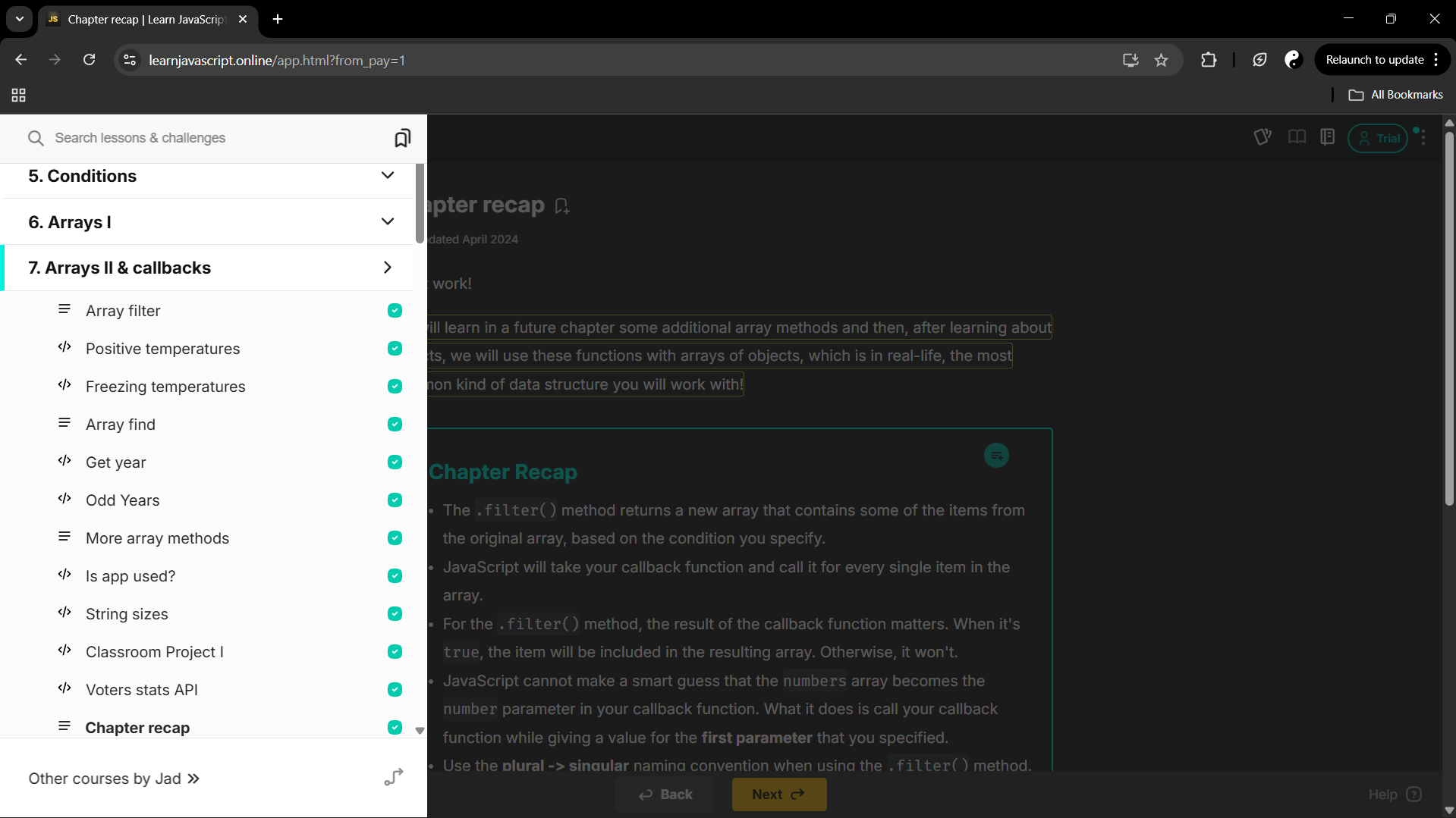 Learning Javascript: Geleerd over Arrays en callbacks van de cursus. (Bewijs)