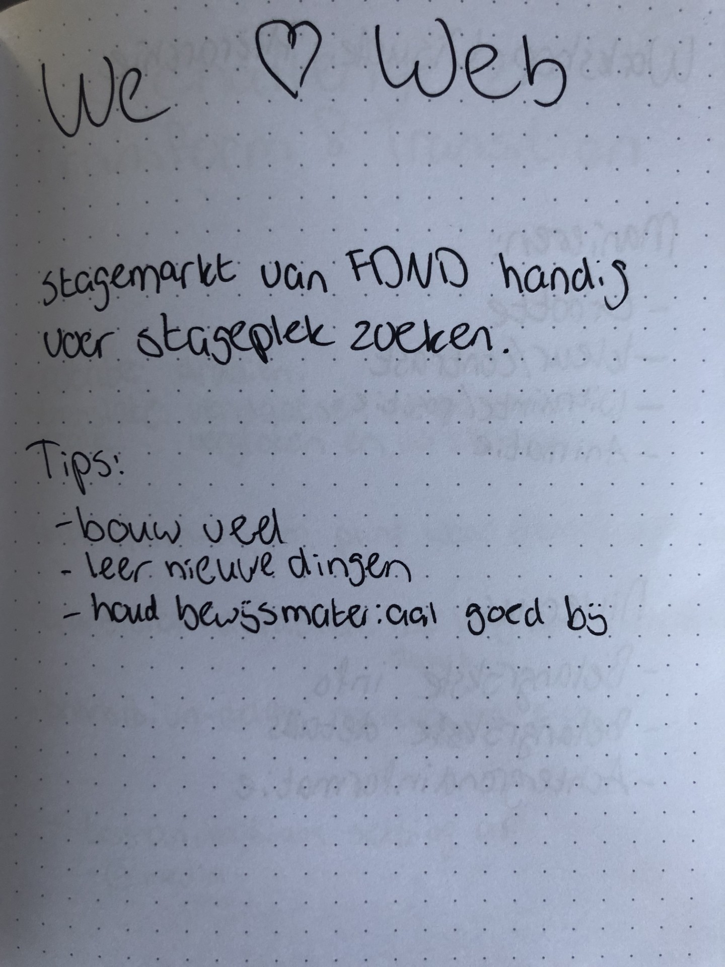 We ♥ Web: Korte presentatie van oud-student over zijn ervaringen tijdens en na de opleiding. (Aantekeningen)