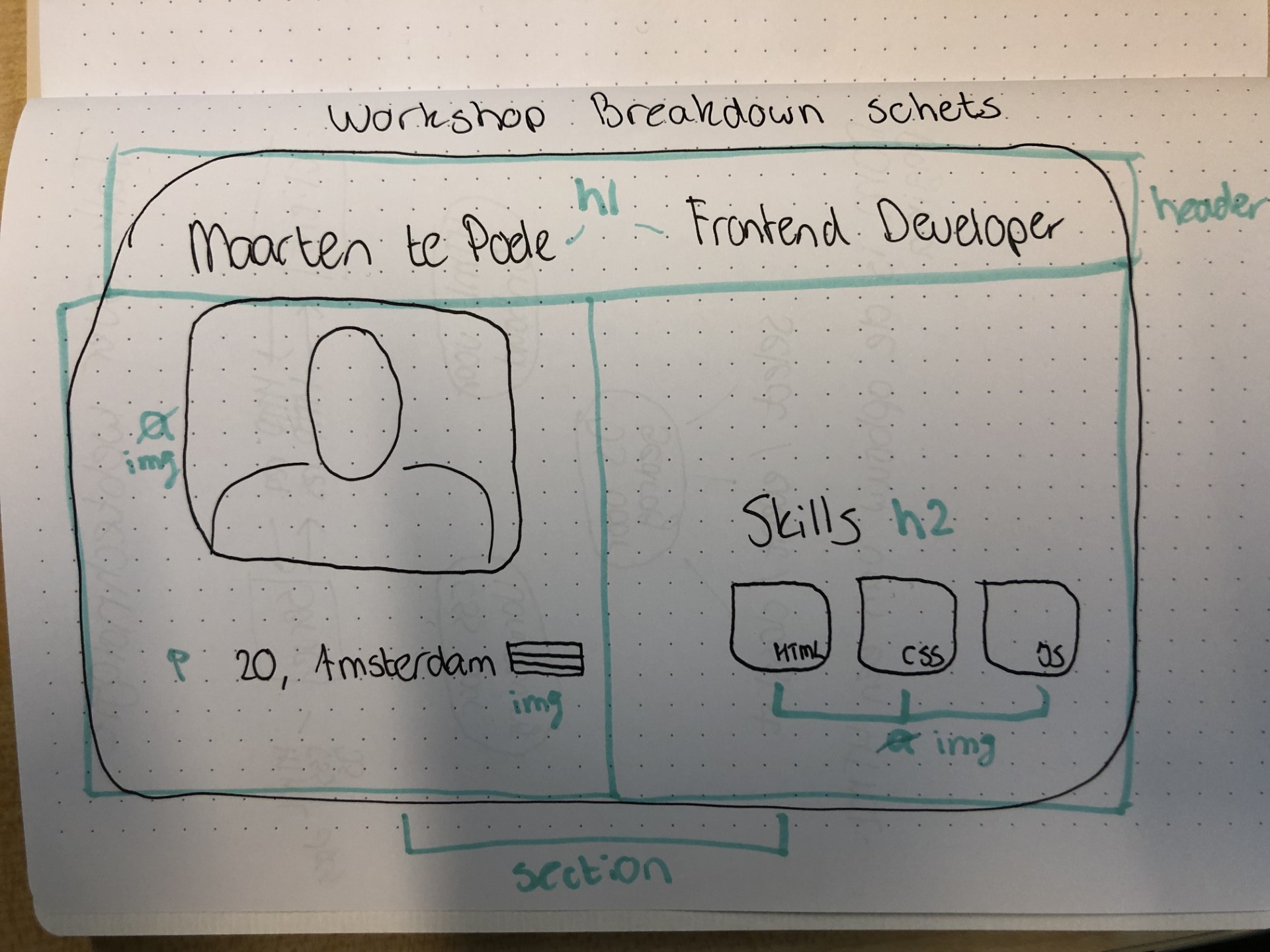 Workshop Breakdown schets: Schets opdelen in HTML-elementen.