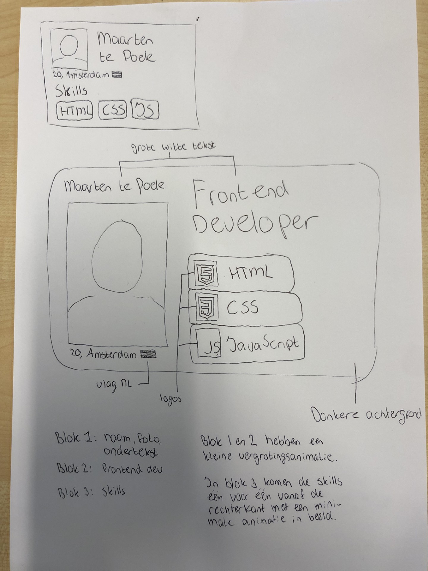 Uit welke blokken je ontwerp gaat bestaan en dat je de goede tags gebruikt voor de breakdownsschets.