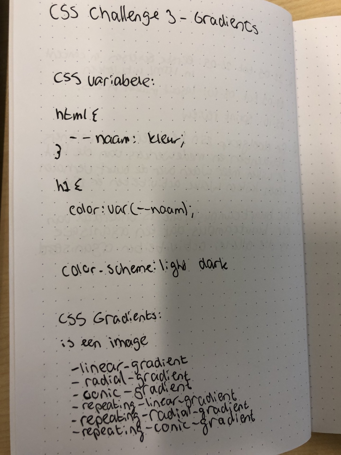 CSS Challenge 3 - Gradients: Geleerd over gradients. (Aantekeningen)