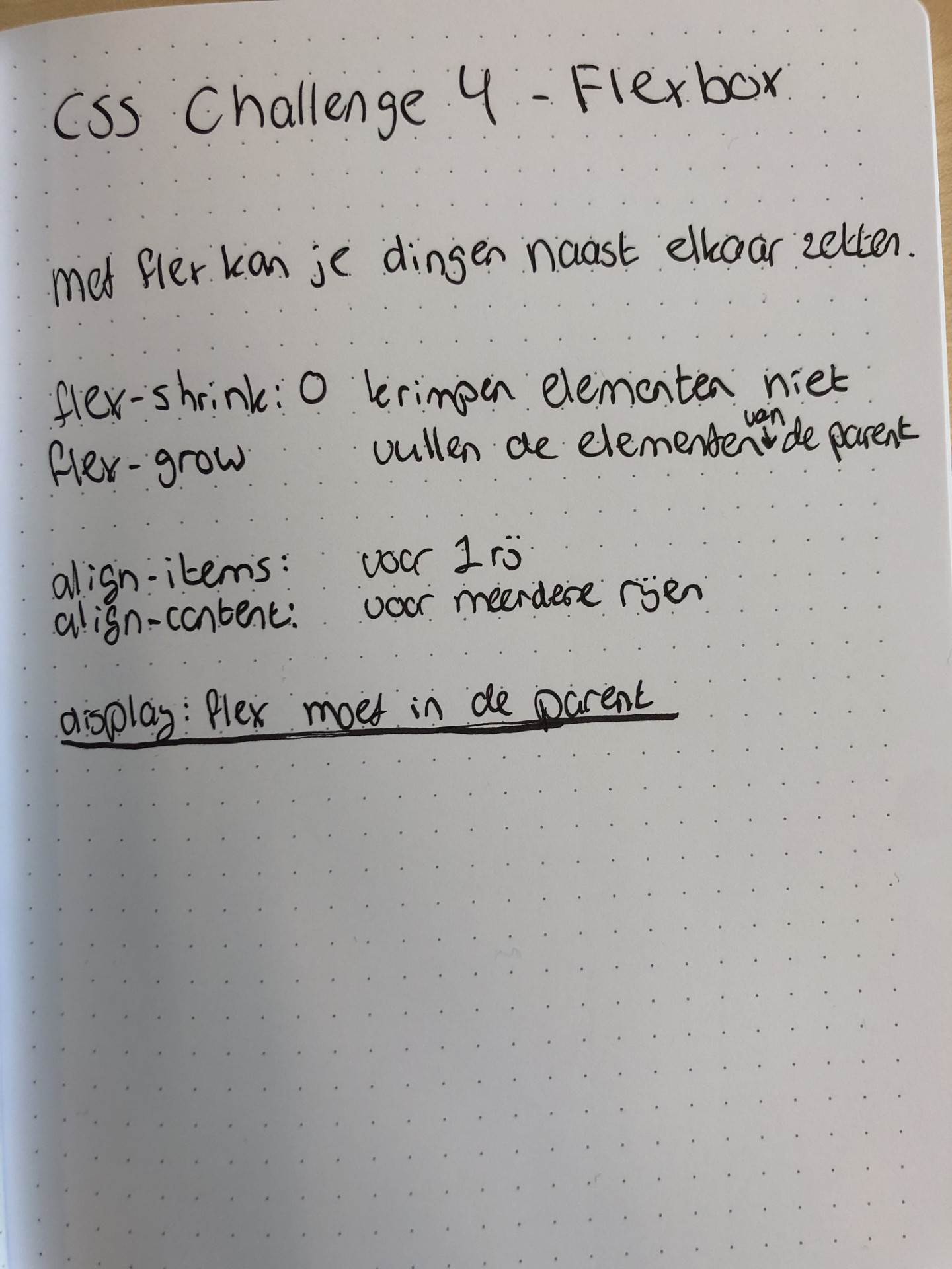 CSS Challenge 4 - Flexbox: Flexbox geleerd en opdrachten gemaakt. (Aantekeningen)