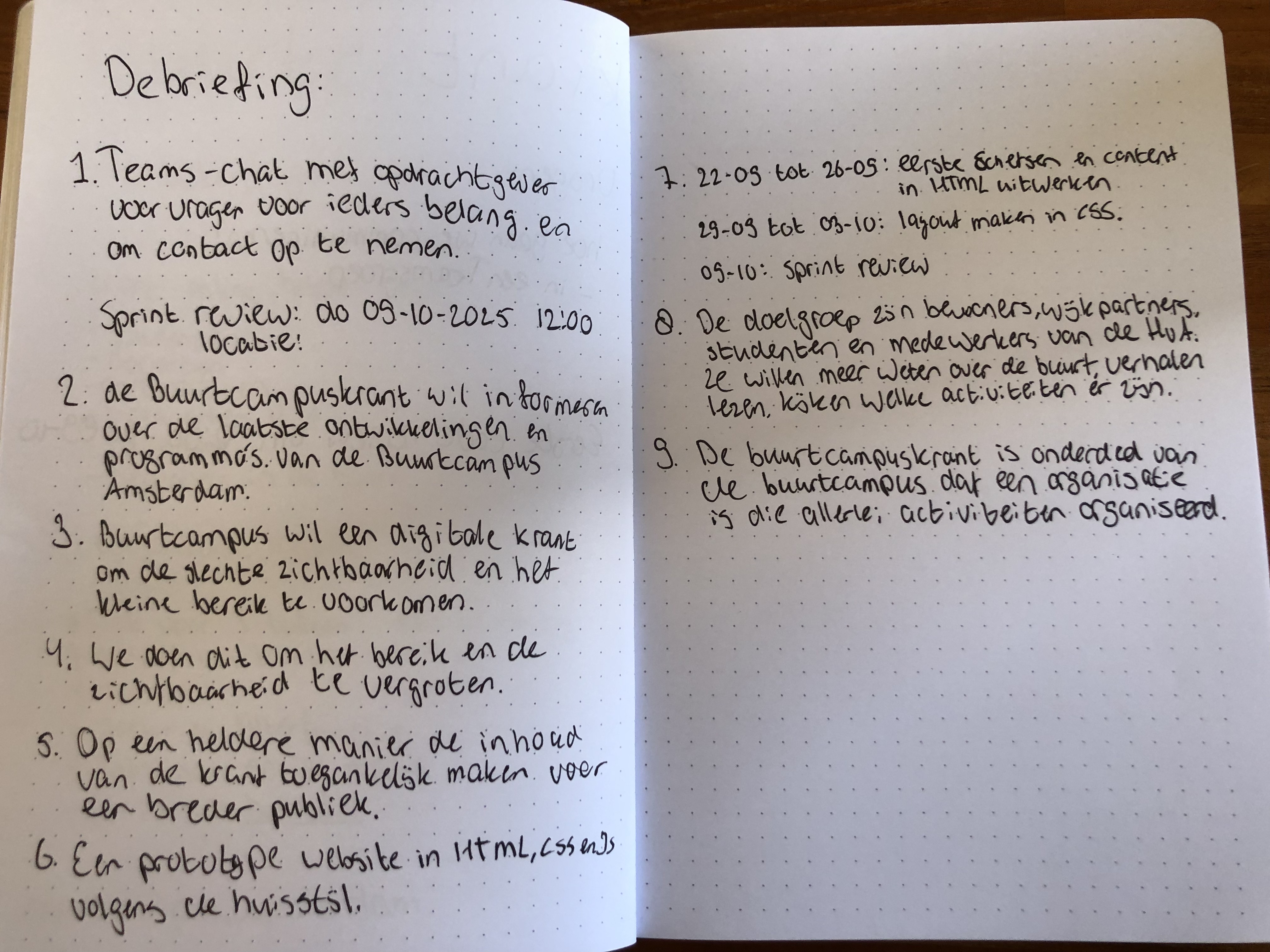 Briefing van de opdrachtgever: Kennismaking met de opdrachtgever en uitleg over opdracht. (Aantekeningen)