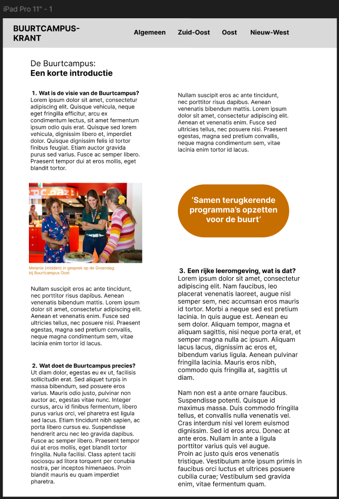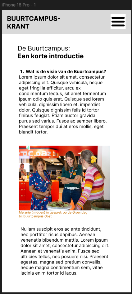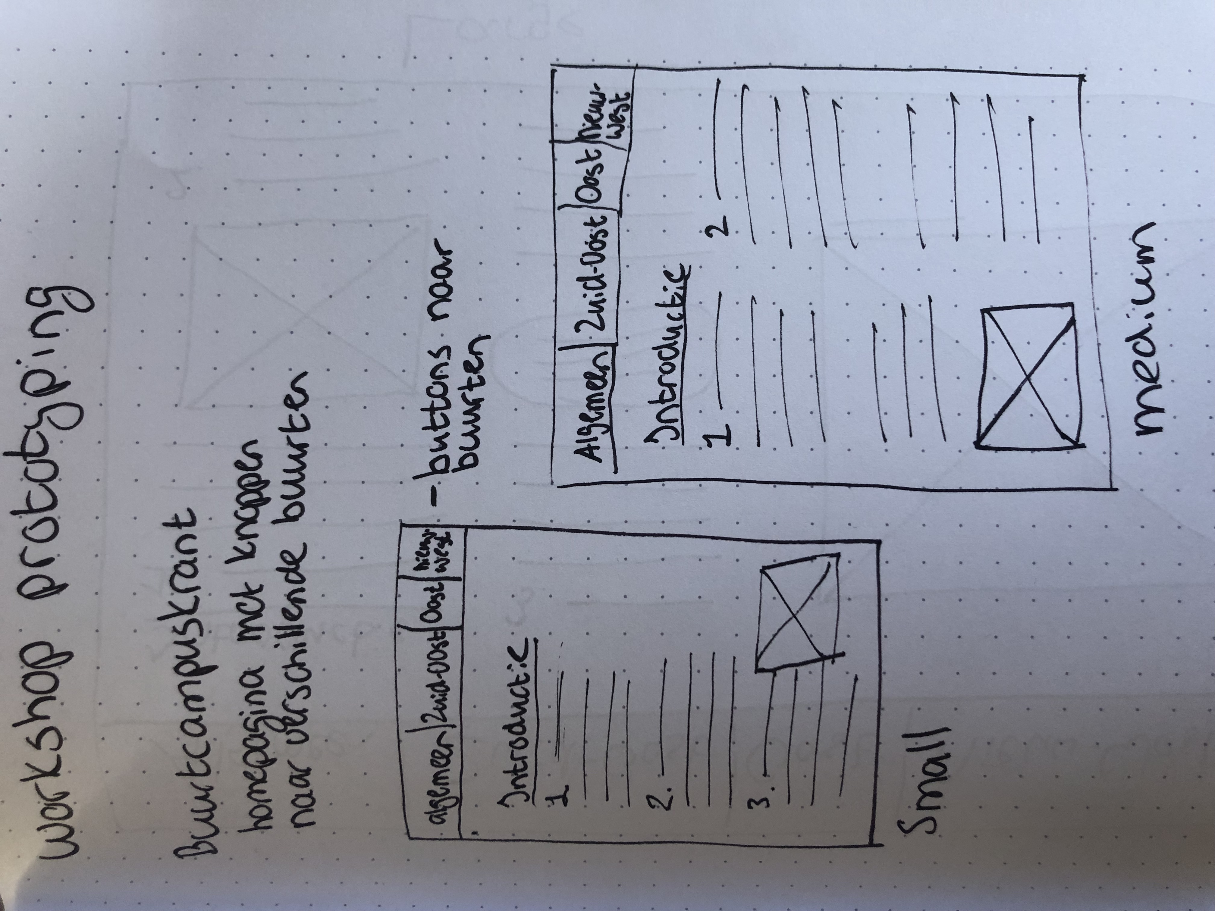 Workshop prototyping: Sitemap gemaakt, wireframe 1 en 2 geschetst, wireflow geschetst, HiFi onterp in Figma gemaakt voor mobiel, iPad en desktop.
